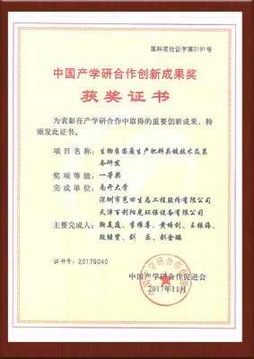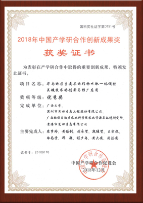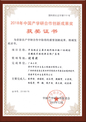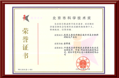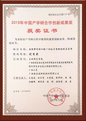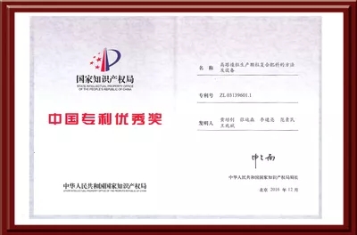 2016年“高塔造粒生产颗粒复合肥料的方法及设备(ZL03139601.1)”获得第十八届中国专利优秀奖。