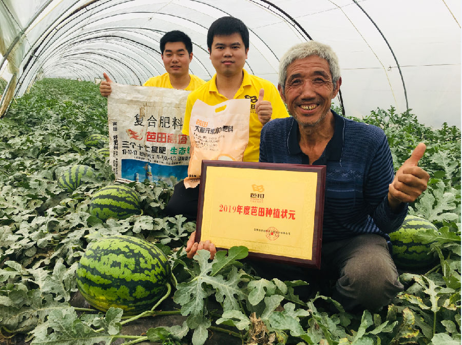 用芭田复肥,瓜农种出了优质高产量西瓜,并喜获种植状元殊荣