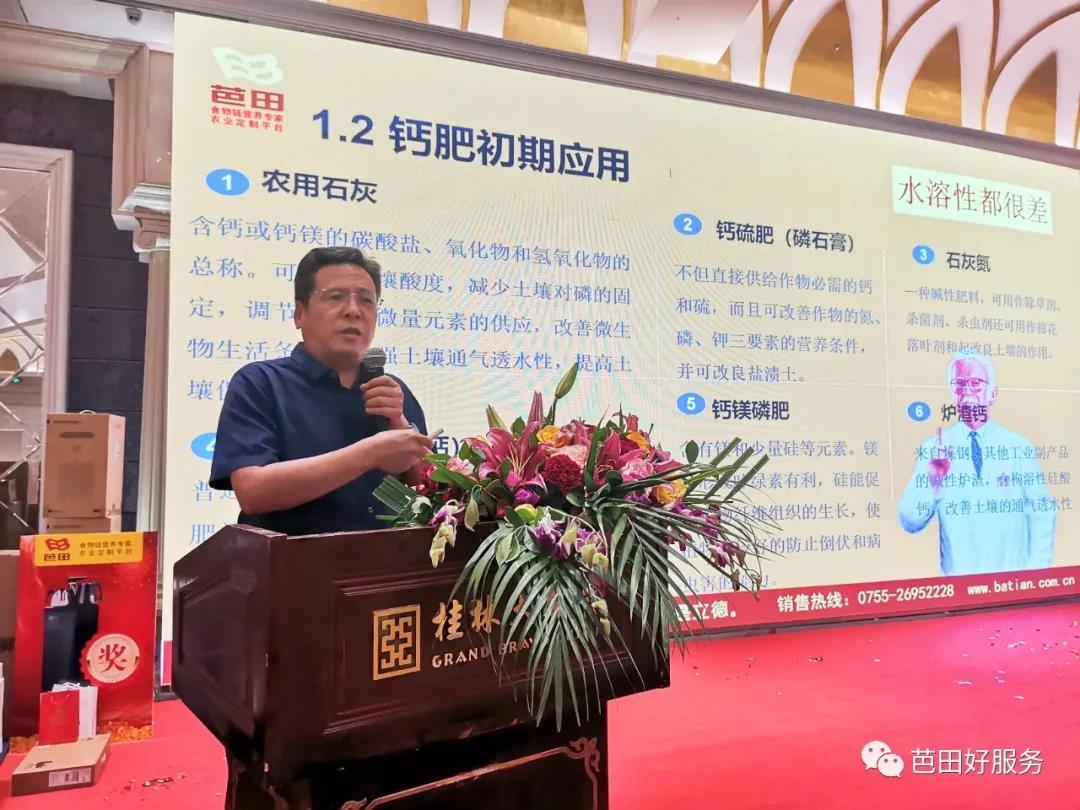 会上,芭田副总裁冯军强详细地分析了国内外钙镁肥的行业现状。冯总表示,与其它同类产品相比,芭田硝钙产品具有以下优势。首先,原材料优势。芭田拥有瓮安小高寨优质磷矿,储量丰富,平均品位为26.74%,属中高品位磷矿。其次,磷含量纯,营养丰富。矿物质营养丰富,养分纯正,种出来的作物营养丰富,食用后有益于身体健康。再次,工艺技术先进。芭田研发推出的首套国产化硝酸磷肥装置技术在国内外均处于领先地位,整体技术达到国际先进水平,已通过行业鉴定。芭田硝酸铵钙产品通过硝酸法工艺将磷矿中的中微量元素和稀土元素浸提出来,经冷冻技术低温螯合将活化的钙、镁、硅、锌、锰等中微量元素及稀土营养很好地保留在硝酸铵钙产品中,营养全,水溶性好,品质优,推广以来,用户好评如潮。