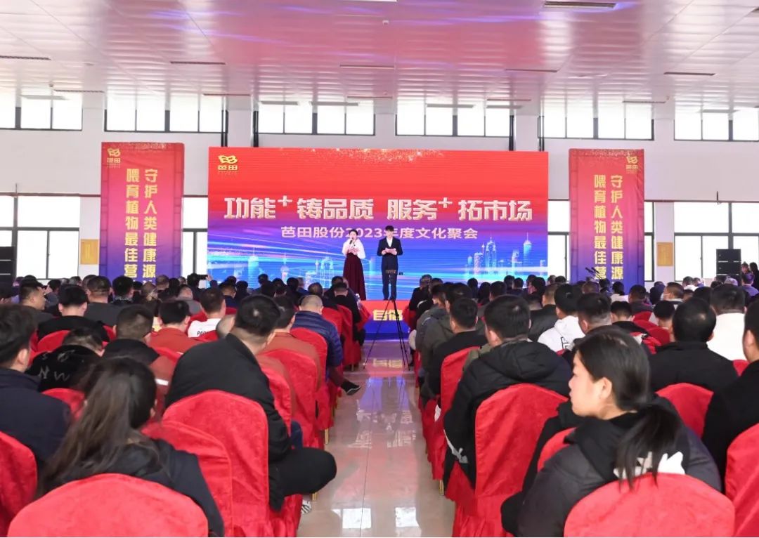 艰难方显勇毅,磨砺使得玉成!2022年,农资市场行情“过山车”式的起伏震荡,使新冠肺炎疫情之下的行业雪上加霜、困难重重。然而,芭田股份在不确定性中稳步前行,在产品上、技术上、营销上做了更多的创新和动作,引领芭田的客户穿透行情、抢占市场。在所有尤其是在贵州芭田人与时间赛跑、向目标冲刺的努力下,最终圆满完成任务!2月27日,芭田股份年度文化聚会在贵州芭田隆重举行,会议同步连线各基地,来自全国各地的350名芭田人齐聚贵州,共庆芭田年度盛典!本次年度文化聚会不仅有对公司2022年卓越先进的表彰奖励,更有对芭田未来新战略、新征程的阐述擘画!芭田股份高管团队出席聚会,董事长兼总裁黄培钊为大会致辞。