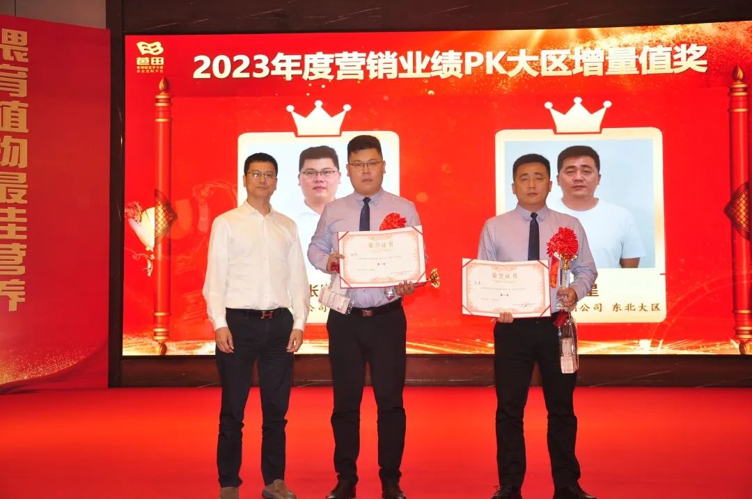 西北大区总监张思斩获2023年度大区总监销售业绩增量第一、业绩增长率第二两项大奖;同时,东北大区总监王星斩获2023年度大区总监销售业绩增量第二、业绩增长率第一两项大奖。芭田全体营销人以热烈的掌声和欢呼声,共同见证属于他们的荣耀时刻!