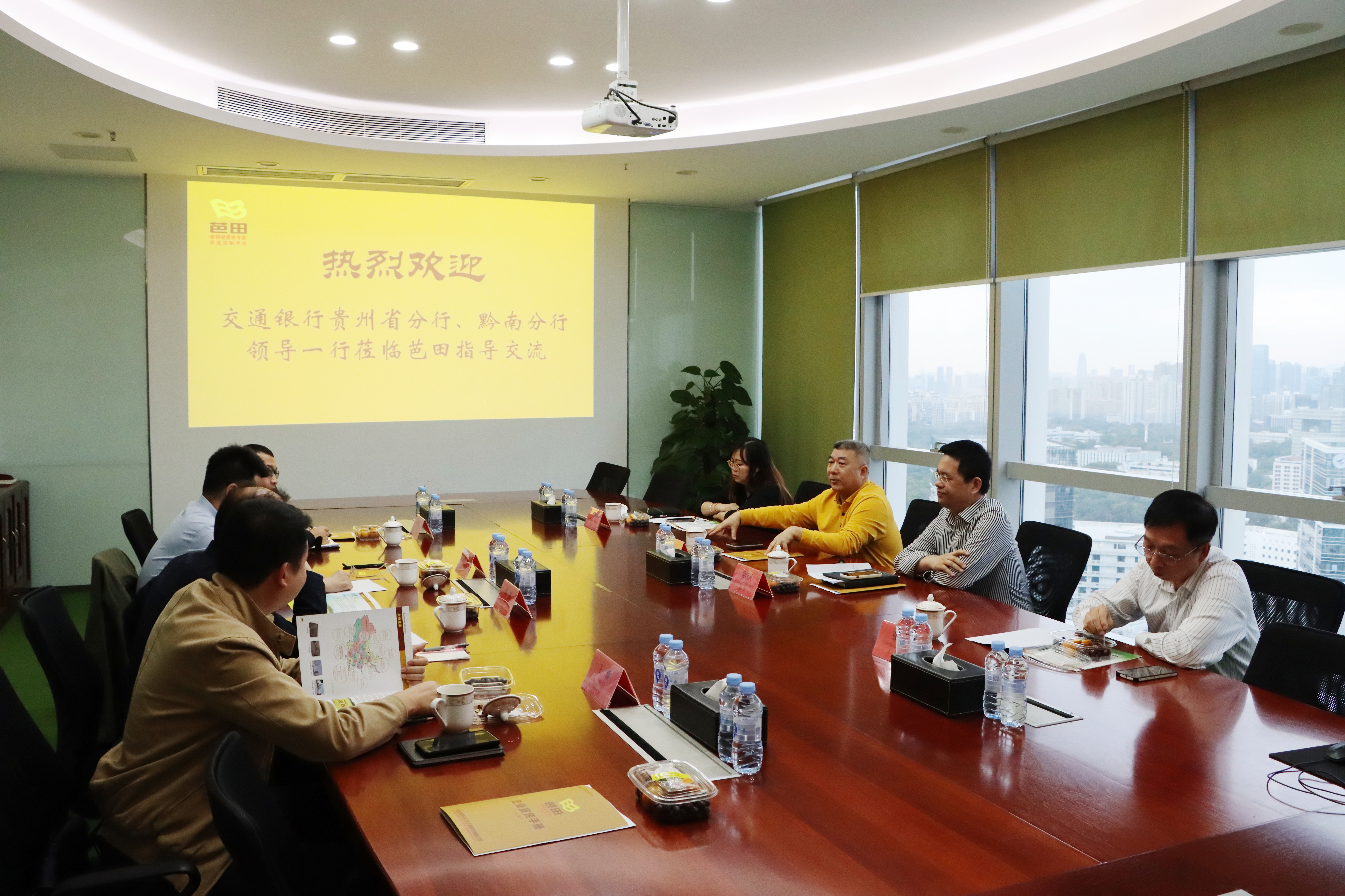 1月18日下午,交通银行贵州省分行副行长、黔南分行领导一行来到深圳市南山区高新技术园芭田股份总部,在芭田股份常务副总裁吴益辉、财务总监胡茂灵、办公室副部长张万海的陪同下,参观了芭田荣誉展示区,对芭田股份的发展历程和技术成果,贵州芭田新能源公司的产业布局和发展情况作了考察和交流。