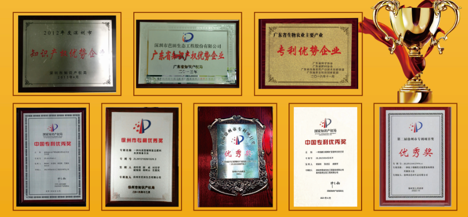 2016中国专利优秀奖、广东省生物农业主要产业-专利优势企业、徐州市专利优秀奖
