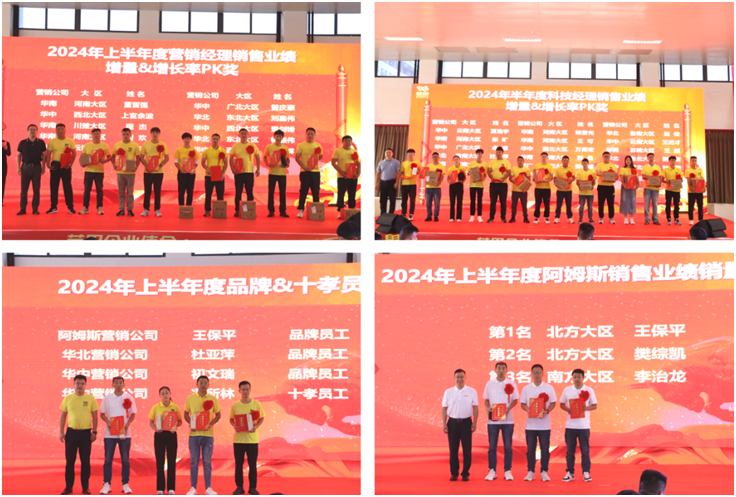 在2024年上半年的辛勤耕耘中,涌现出了一批实干笃行、成绩显著、贡献突出的优秀个人。为进一步表彰先进、鼓舞斗志,在培训大会现场,公司举行了盛大的颁奖仪式对先进者进行了表彰,号召全体芭田人,以先进为榜样,向标兵看齐、向榜样学习,实干笃行、创新创效,撸起袖子加油干!颁奖现场,品牌员工获奖代表杜亚萍、阿姆斯销量奖获奖代表王保平、科技经理业绩pk奖获奖代表王彦翔、营销经理业绩pk奖获奖代表董留强、行销总监业绩pk奖的获奖者李伟分别进行了获奖发言。他们表示,在下半年的工作中,将会继续发扬“自信、担当、创新、共享”的芭田核心价值观,坚持实干笃行,以更加饱满的激情、直面困难的勇气,向下半年目标冲刺!