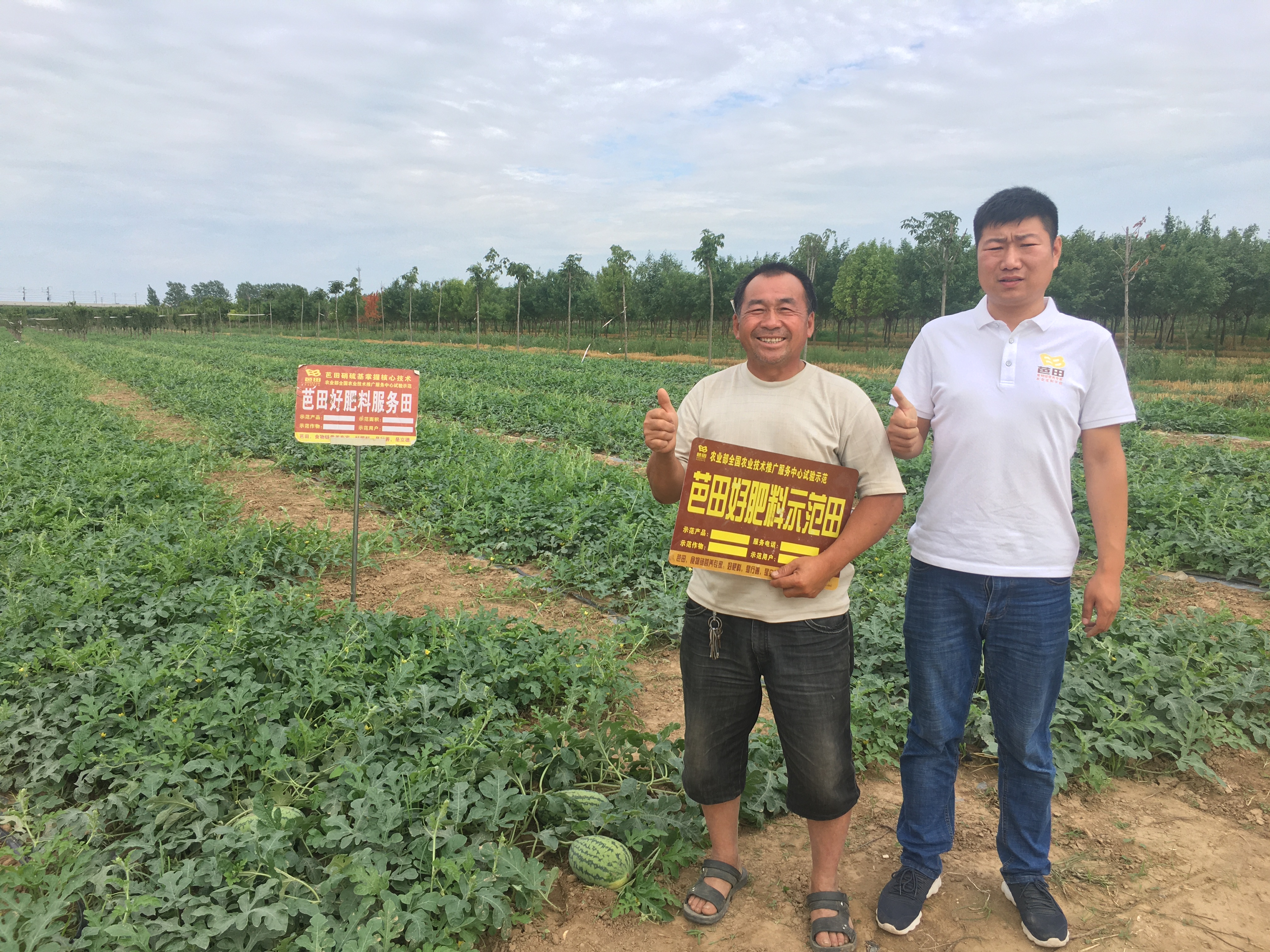今年种西瓜,他又选择了芭田品牌肥料。西瓜用上之后,长势好,个头匀称,叶片绿油油的;西瓜成熟上市时预计每个将有几十斤,预计每亩增产600斤不成问题。