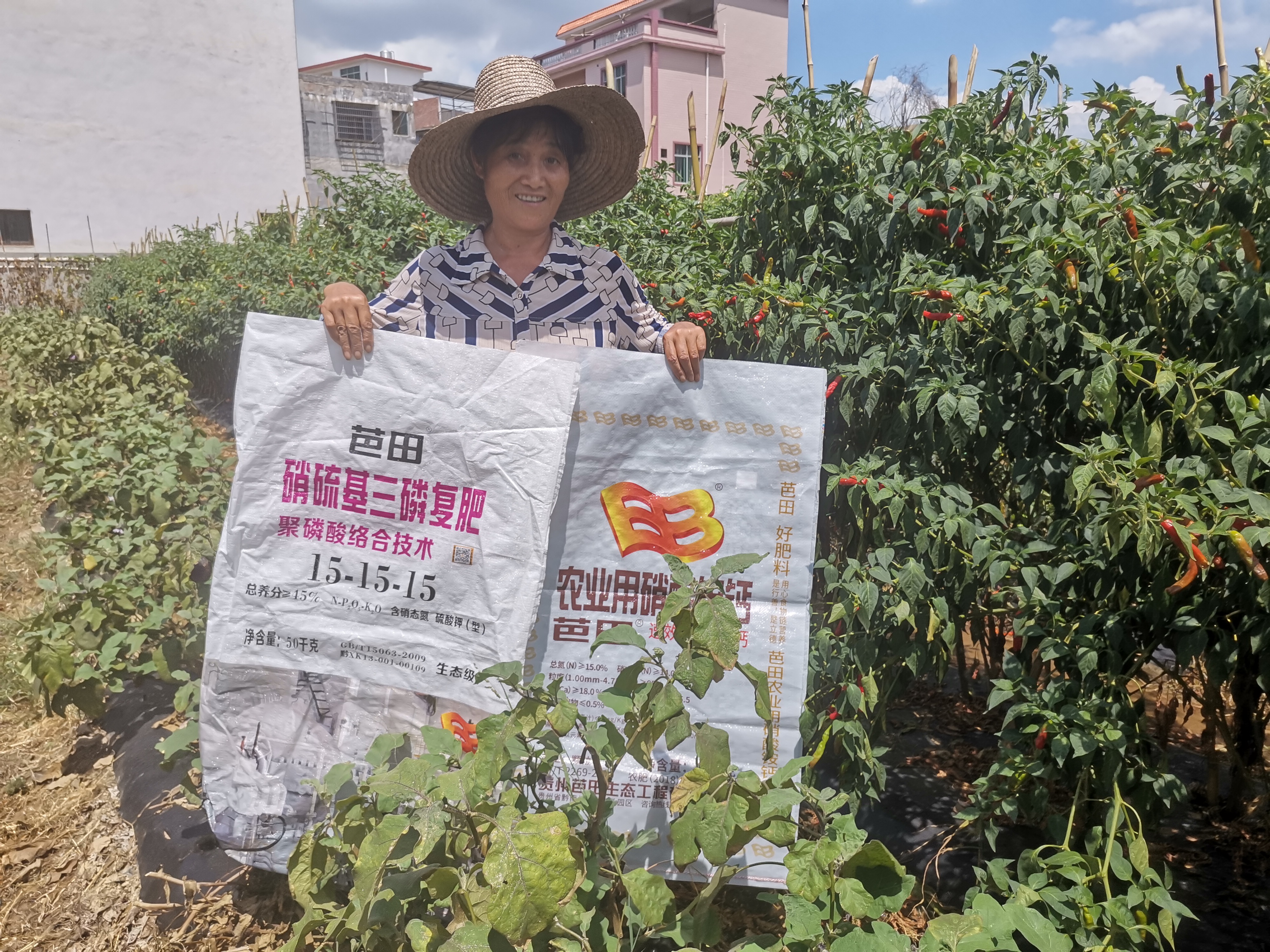 “今年的辣椒长势非常好,你看,这两行辣椒树的个头比我还高,结出的辣椒个头大,色泽好,卖相佳,拉到集市上后,优先卖完,还能卖个好价钱;产量方面,较之以往用别的肥,每亩增产500斤以上,每两天就能采摘一次。多亏了今年选用的芭田套餐肥,这个肥料真行。”辣椒收成好,钟阿姨盛赞芭田套餐肥,愿为芭田代言。