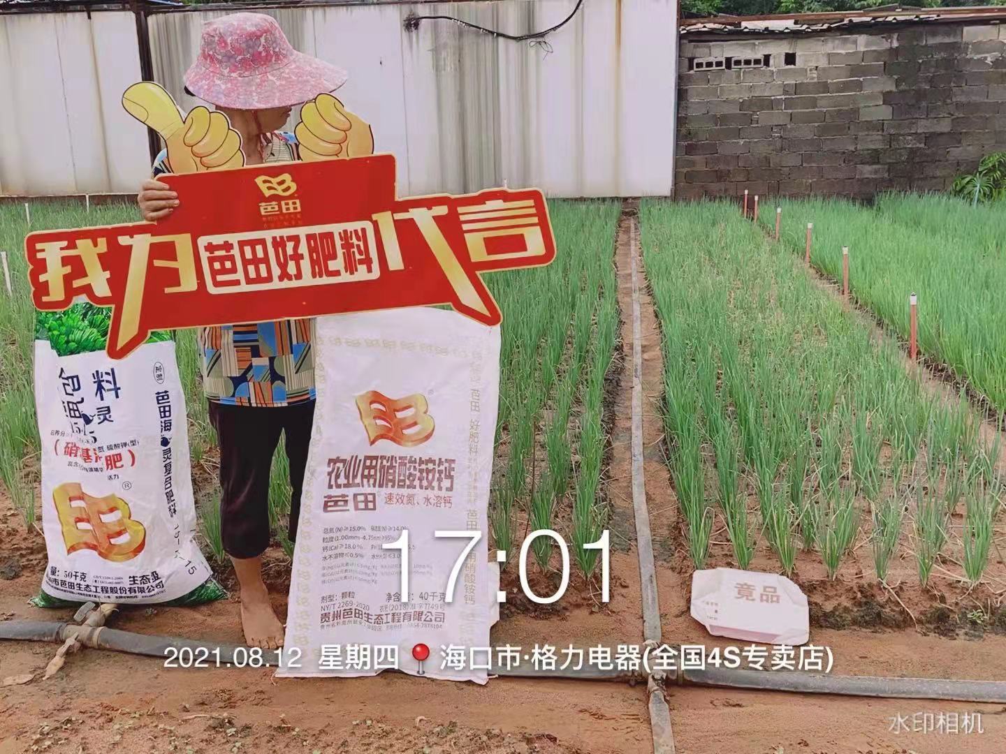 近日,许多用户反应,芭田大单品复合肥配上硝酸铵钙产品施用,效果出奇的好。采用芭田这种套餐施肥方法后,农作物增产,用户增收,达到了节肥、增效、多赚钱的目的,用户自愿为芭田套餐肥代言,海南海口秀英周仁村菜农李世清大哥就是其中的一位。李大哥今年种了3亩竹葱,施用的是芭田硝酸铵钙、芭田海精灵15-15-15套餐肥,使用后,一垄竹葱增收近200元,小竹葱种出了大经济。