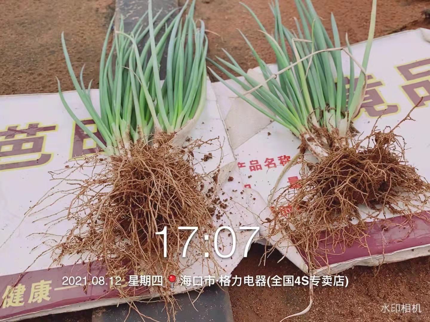 施用芭田肥的竹葱根系发达,分蘖多,须根长,个头高,茎秆粗壮,对比一旁用其它牌子肥的竹葱,优势一目了然。