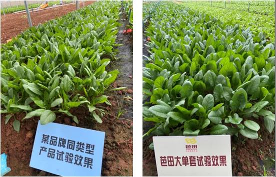 12月6日,陆大哥给菠菜施了第一次肥。四天后,陆大哥发现施用芭田大单套的菠菜提苗、返青速度快,叶色油绿有光泽,生长茂密。而施用某品牌同类型肥料的菠菜提苗慢,长势不整齐,叶片偏黄。