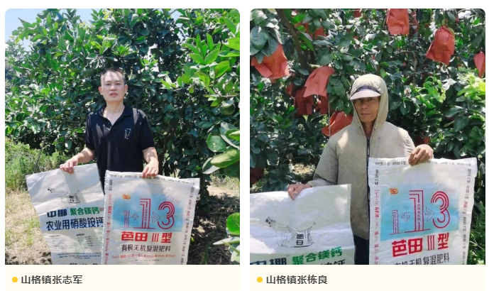 “之前听别人说芭田肥料效果好,但是一直都没用。今年使用了芭田有机无机Ⅲ型复肥16-6-16,发现效果确实不错。蜜柚的长势肉眼可见的比往年好,叶片墨绿硕大,挂果还多。”漳州市平和县山格镇大户张栋良开心地表示。同村的张志军张老板看到芭田服务人员的到来,激动地说:“用了芭田有机无机三型复肥,葡萄柚今年增产了。对比往年的话,今年一棵树能增产30-50斤。”