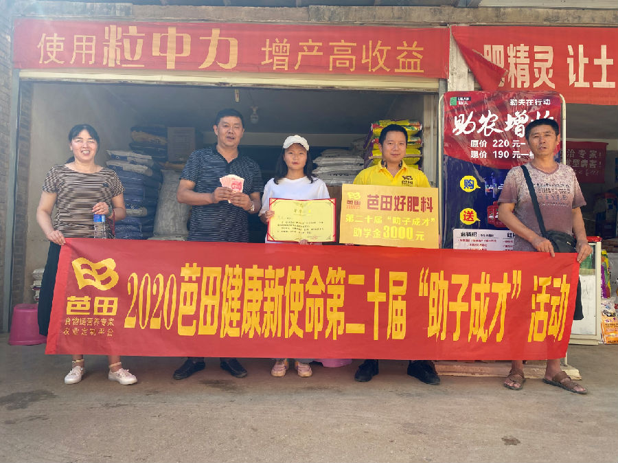 芭田掌舵人就是从农村里走出来的,他深知作物是农民的希望,儿女健康成才是全家族的希望。正是因为如此,他才坚定的以“食物链营养专家”为企业担当,坚持造好肥,卖好肥,是行善,是立德。一方面关心当前收益,更关心土地和环境,用心造好肥,用好肥减少对土地和环境的污染,保护土地为子孙后代造福。另一方面,资助农村孩子上大学,做立德行善的事。农村学子的出身无法选择,但是命运可以改变,让他们多读书,学业有成后能回到家乡为农民增收、农村富强、农业可持续发展贡献知识和力量,让农村变得越来越好。