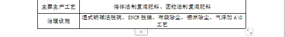 1、生产工艺粉尘:根据工艺流程,生产工艺粉尘主要来源于干燥机和冷却机及筛分等其他生产环节。生产中的工艺粉尘通过配套的布袋式除尘器除尘后排到大气中去,冷却工艺中物料产生一定的粉尘经过引风机和除尘设施除尘排到大气中去,除尘采用静电式除尘和布袋式除尘组合式工艺回收粉尘,其他生产环节中产生的粉尘以及筛分环节产生的少量粉尘,大部分粉尘通过组合式除尘泵回收粉尘后经水雾喷淋后达标气体通过烟囱高空排放。主要排放口标准:颗粒物许可排放排放浓度限值,120 mg/m3,;氮氧化物许可排放排放浓度限值,240mg/m3。