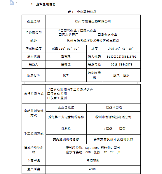 按照环境报告相关法律、法规要求,徐州市芭田生态有限公司对所排放的污染物组织开展自行监测及信息公开,并制定自行监测方案。