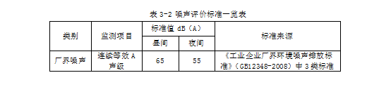 厂界噪声执行《工业企业厂界环境噪声排放标准》(GB12348-2008)中3类标准限值,详见表3-2。