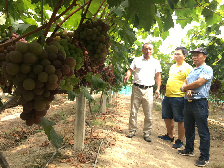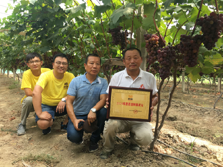 在众多的葡萄园中,长势最好的当属大圩镇的种植大户黄大保家,位于科技园路的和谐葡萄园。虽然葡萄采摘已接近尾声,大多数葡萄园开始出现黄叶和烂果现象,但黄大保家的葡萄依然挂果率很高,叶片厚实翠绿,籽粒饱满,成为人们优先采摘的对象,价格更是一度卖到了10元/斤。黄大保荣获“芭田2019年度葡萄种植状元”当之无愧。