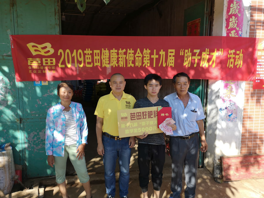 芭田造好肥是对土地的热爱,是对人类健康的守护,是对农民的关怀和对食物链营养专家的担当;十九年公益助学回馈社会,更是对莘莘学子的关爱。爱心落地,梦想花开。这个夏天,“芭田股份健康新使命第十九届助子成才活动”温暖再出发,让众多贫困学子被爱包围。
