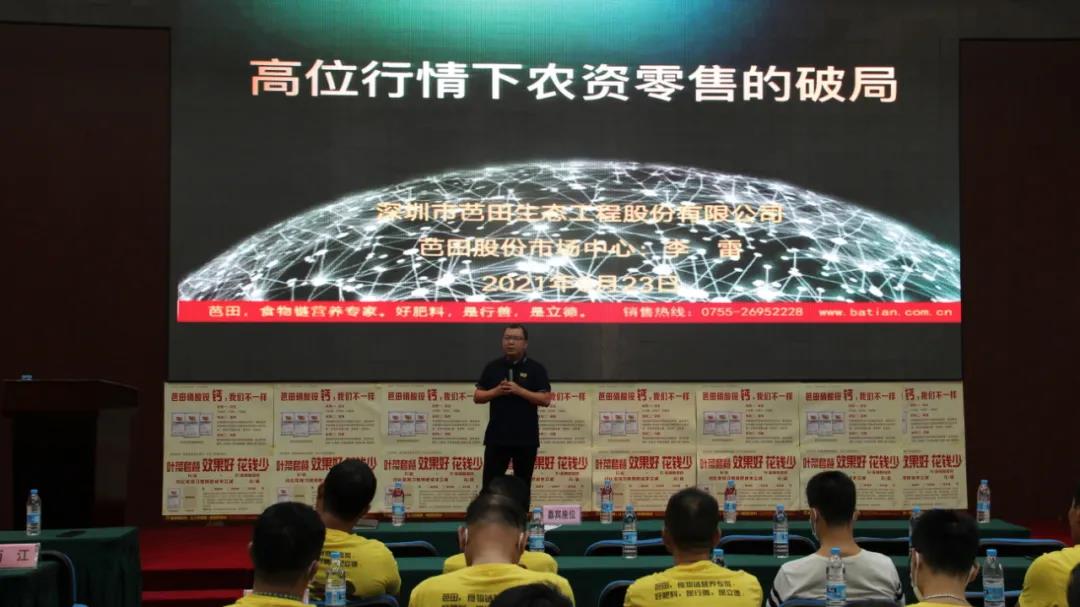 “未来的增量市场来自哪里?首先,来自躺平的竞争对手。在大部分竞争对手还未‘觉醒’时,比大多数经营者稍微往前一步,主动出击,就能获得更多的市场机会。其次,未来的用肥结构将发生改变,抓住新的机遇,比如芭田大单套产品。做在别人前面,让用户认可,就有机会抢夺新的用肥结构带来的增量市场。第三,新的销售方法带来的增量市场,走出去、动起来!用新的推广方法,就能抢到新的增量市场。”芭田股份华南营销公司总经理林育忠在致辞中表示,“芭田从整体产品生产研发、终端品牌推广,营销服务模块都有统一的系统,具备引领大家做好产品结构调整、做好营销推广服务的能力,也将全力携手大家做好大单套产品的推广,真正做到抢占未来的增量市场。”