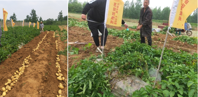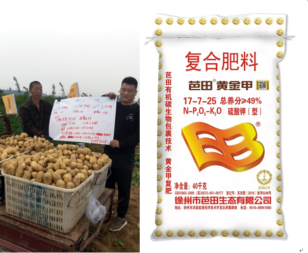 袁三林种植土豆多年,之前一直选择的某品牌进口肥。去年在零售店潘老板的介绍下开始尝试使用芭田品牌肥料。他发现种出来的土豆不比进口肥差。于是,今年5亩土豆地全部用上了芭田肥料。底肥选择的芭田黄金甲(17-7-25),每亩用100KG,加有机肥1包。