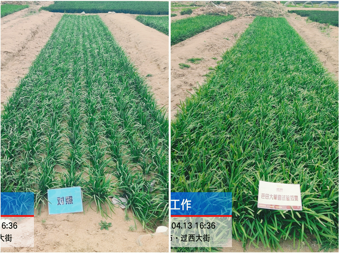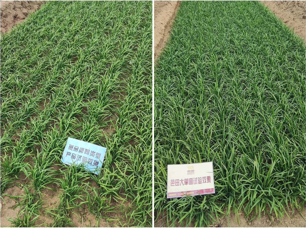 “看,这就两块地里种出的韭菜,用芭田的长势多好,对比一目了然。”尹大哥激动地说。大伙看到,施用芭田水溶2号肥料的韭菜个头高,叶片厚实翠绿,茎秆挺拔,苗齐,卖相极佳,对比用其它肥的韭菜,优势非常明显。随后,尹大哥,拿着尺子在两块韭菜地里做了测量,结果显示,施用芭田水溶2号水溶肥的韭菜高度普遍在35cm,而用其它牌子肥韭菜普遍在20cm左右。