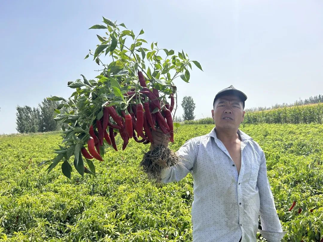 单株辣椒结果在60个以上,预计干椒有望达到每亩800公斤。”