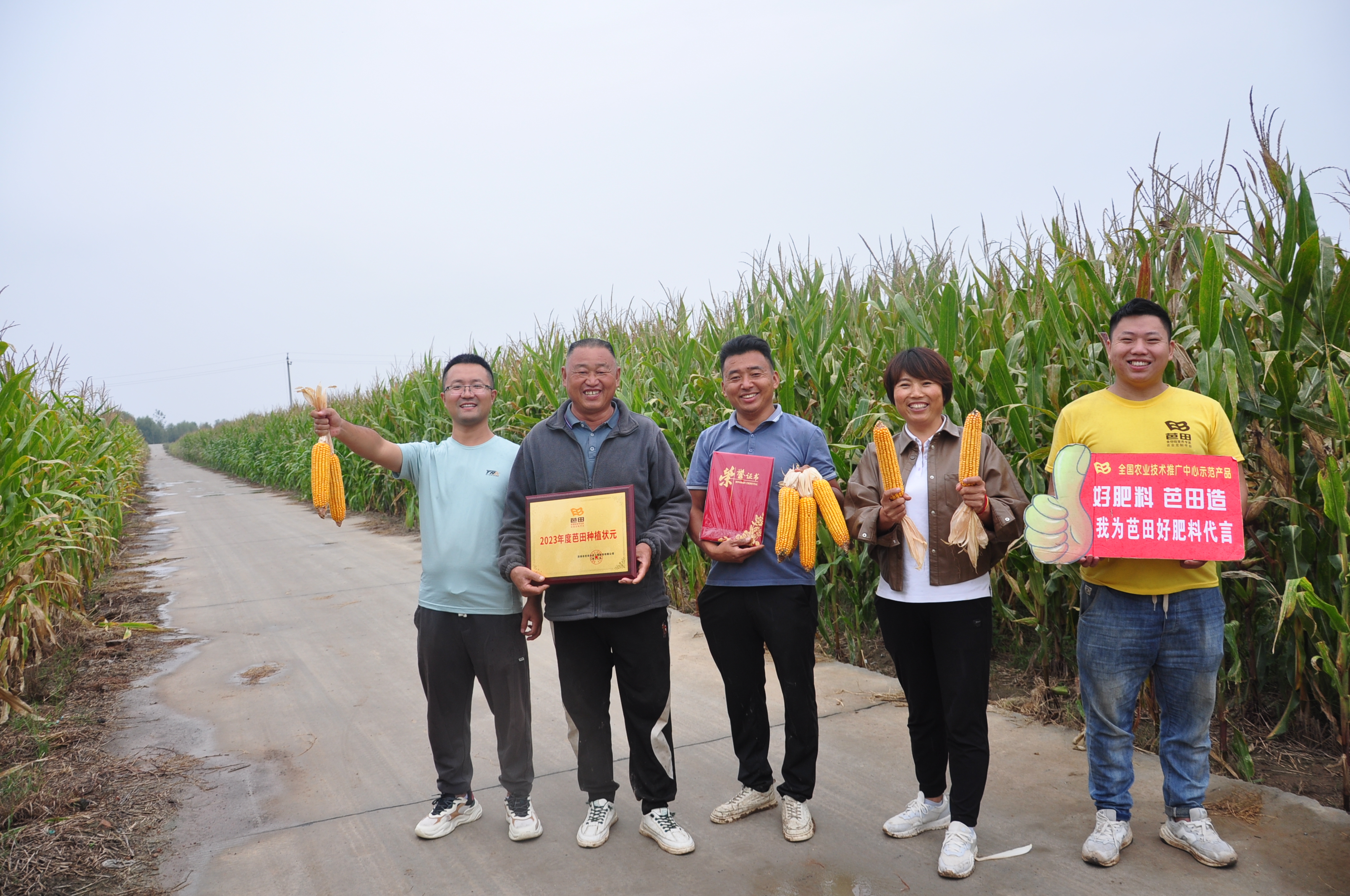 “大家看,我的玉米个个都很漂亮,单个重量普遍有8-9两重,每亩可收获1500-1600斤产量,对比邻居用其它肥的玉米,每亩增产300斤不成问题。真感谢芭田肥,虽然芭田肥料价格上略高了点,但品质好,产生的收益更高。真实印证了那句话:‘施肥用芭田,等于不花钱。’”老刘乐呵呵的分销着自己的致富经。