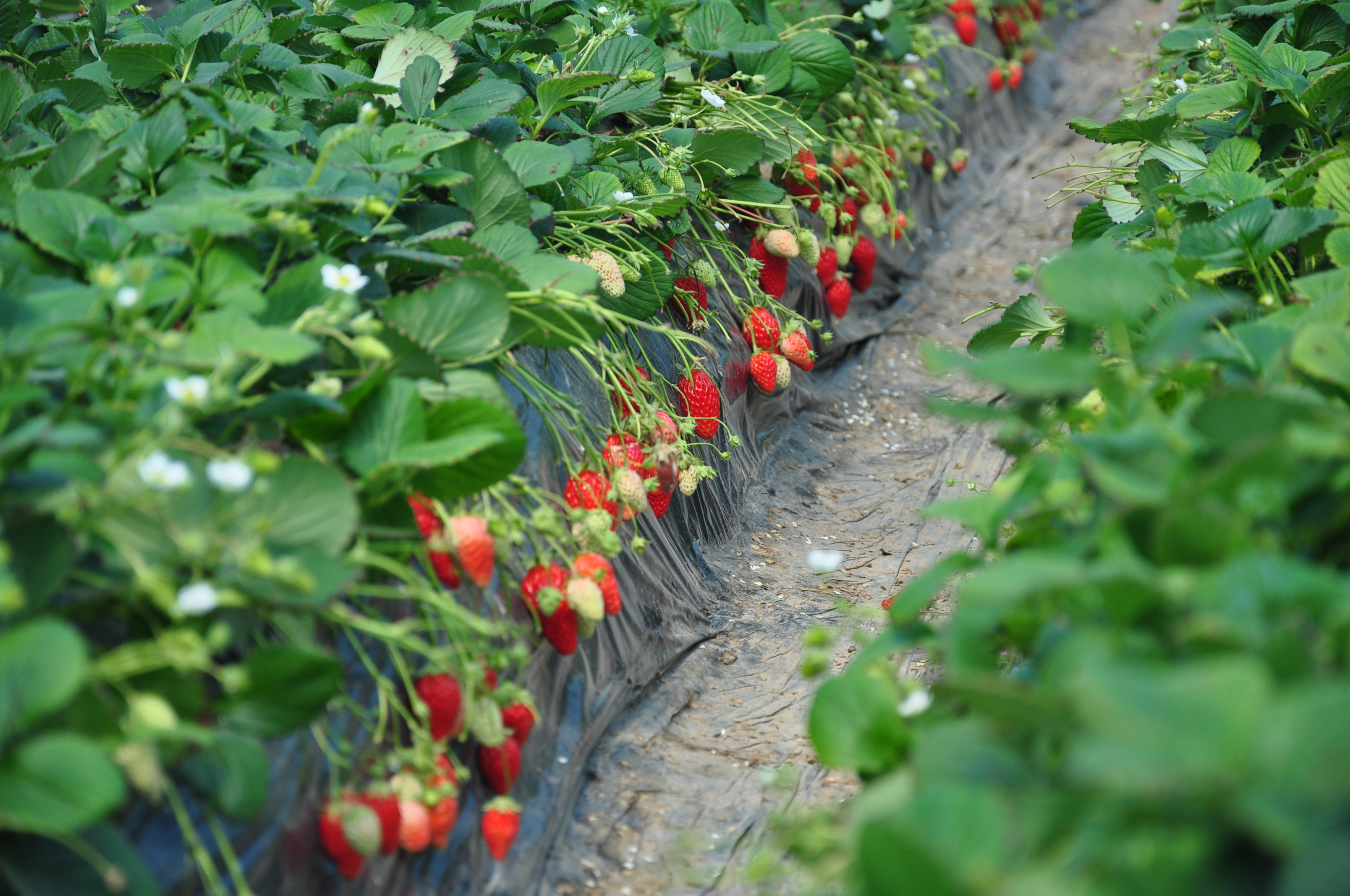 用芭田后的草莓色泽艳,叶片翠绿