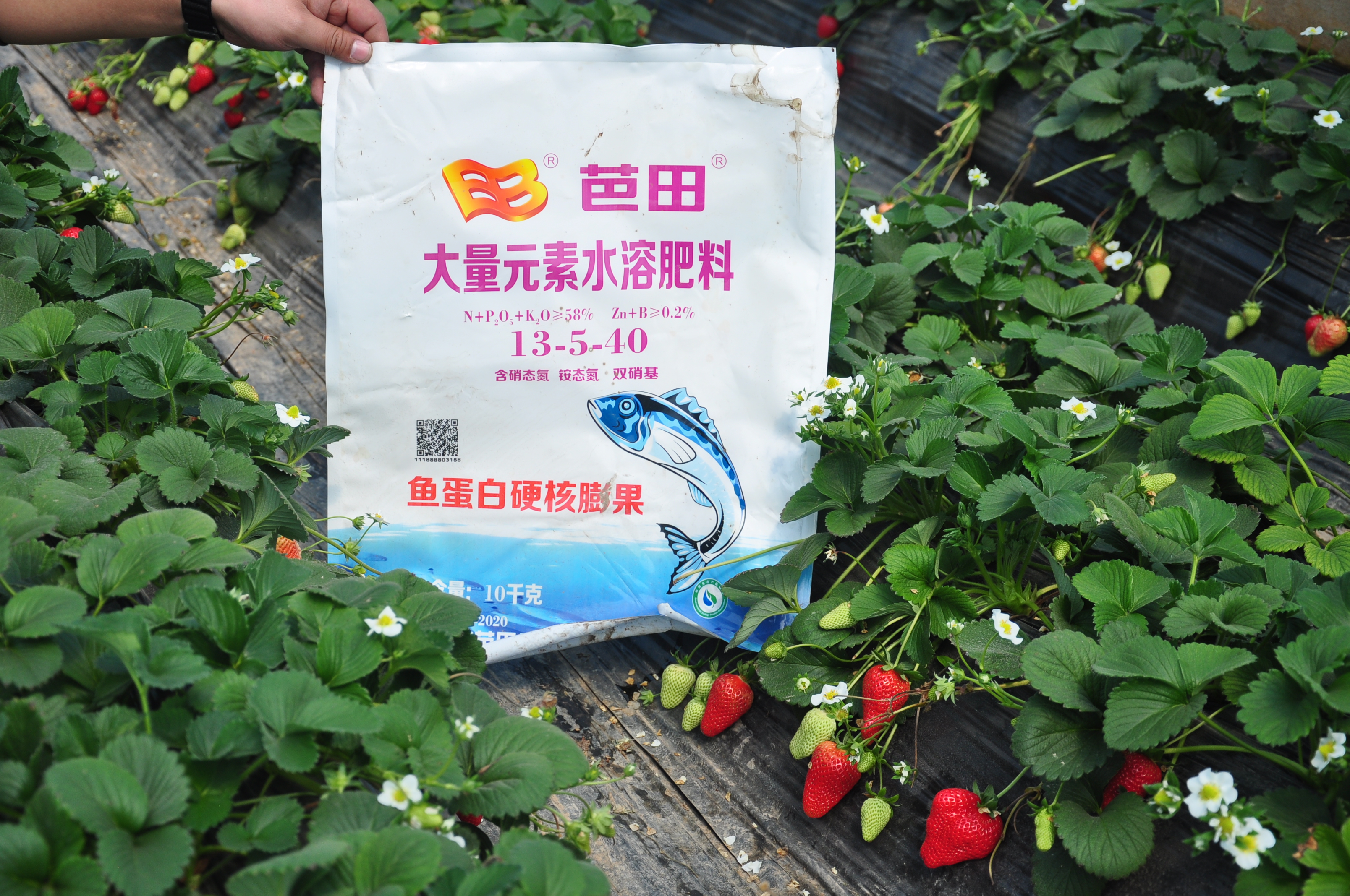 王老板是一位芭田忠实用户,他种了10亩大棚草莓,选用的是芭田品牌肥,对芭田产品的品质和效果更是深信不疑。 王老板告诉大伙,芭田肥是好肥料,品质有保证,比如自己去年选用鱼蛋白水溶肥速溶速效、全溶无渣,滴管上使用后,不会堵塞滴灌带。施用后的草莓叶片翠绿,果色靓丽,小果少,大果多,个头均匀,上市早,能被收购商提前预定,卖上高价格。过年那段时间,零售价为40元/每斤,比邻居每斤多卖了8元钱。产量方面,每亩增产15%左右,对比优势很明显。“草莓收成好,芭田肥是最大功臣,以后种草莓,我肯定还选芭田肥。”王老板笑呵呵地说。