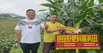 “芭田肥是我见过最好的肥料,效果好的不得了!大家快来看,我这块玉米地就是用芭田肥料的,玉米上用芭田后,茎秆粗壮,拔节快,叶片浓绿厚实,结出的包谷个个有这么粗,籽粒饱满,我对芭田产品很满意,希望大家都来用。”第一年用芭田,大户张大叔对芭田肥料很满意,见有人参观他的玉米,张大叔一下子就打开话匣子,并用手比划着夸自己的玉米好。